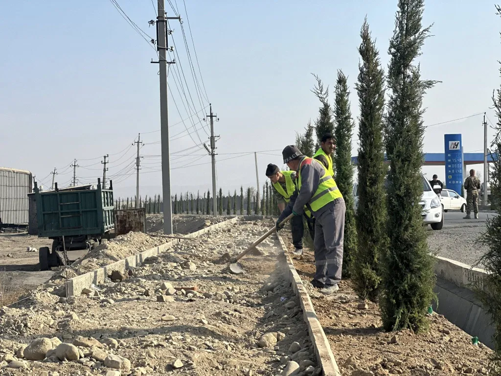 Кадамжай районунун А.Масалиев айыл аймагынын Разьезд айылына тагыраагы Кызыл-кыя өткөрмө пунктунун жол четине 400 даана ийне жалбырактуу көчөттөр отургузулууда.